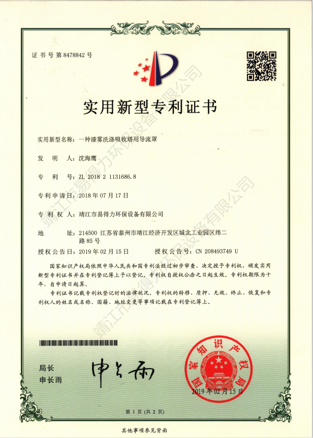專利證書(shū)本公司坐落于開(kāi)放開(kāi)發(fā)超前城市江蘇靖江,我們精良優(yōu)秀設(shè)計(jì)團(tuán)隊(duì)始終遵循著創(chuàng)新超越的理念,贏得了中外合資企業(yè)的信賴。易得力環(huán)保設(shè)備有限公司與上海環(huán)科院等科研單位保持合作關(guān)系,不斷加大自身的科研力量,集中了一批國(guó)內(nèi)環(huán)境科技研究和應(yīng)用方面的高素質(zhì)人才,取得多項(xiàng)實(shí)用新型專利證書(shū)。…… 查看更多 >>